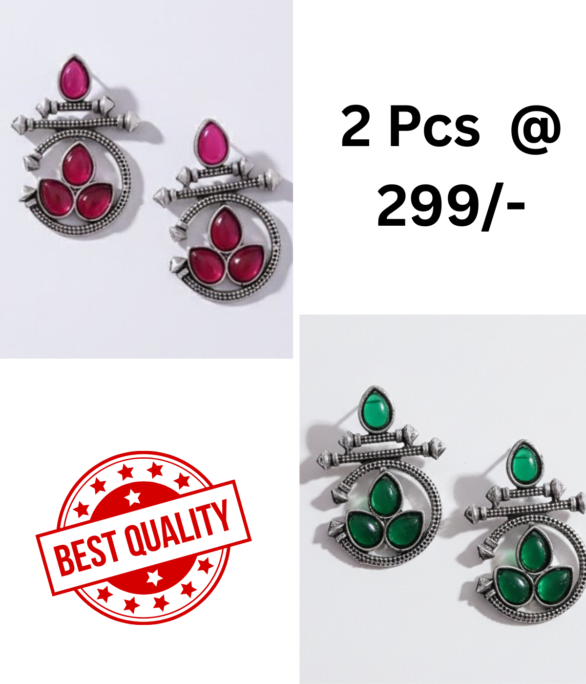 Stunning Oxidized Silver Earrings Combo: Rani Pink and Black Stone Designs