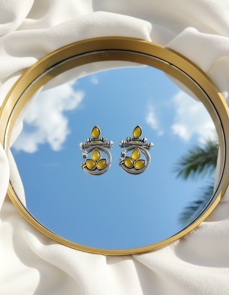Stunning Oxidized Silver & Yellow Stone Ethnic Earrings